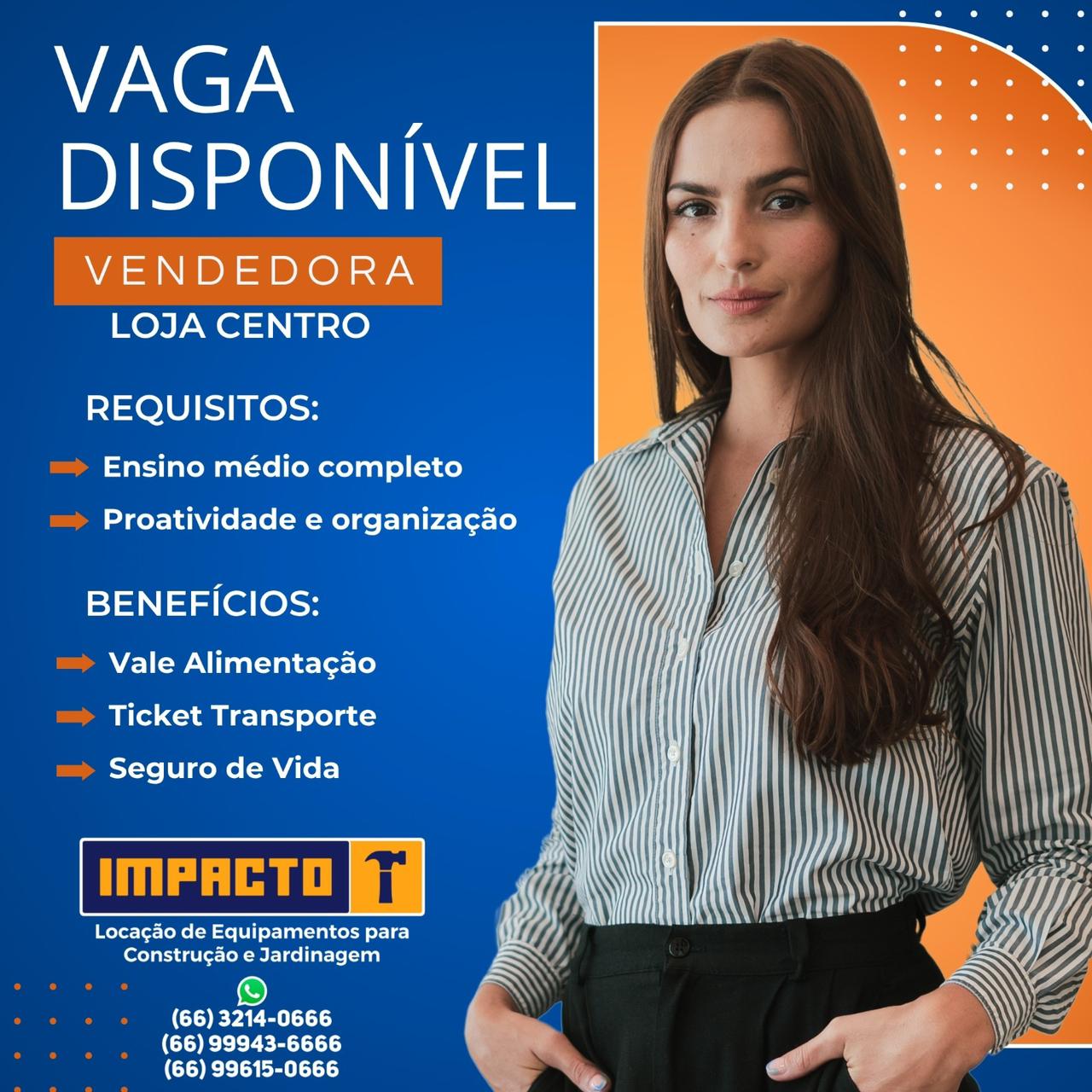 Empresa: Impacto Vaga de Emprego: Vendedora E-mail: balcao@cdlaf.com.br Fone: (66) 3521-2591